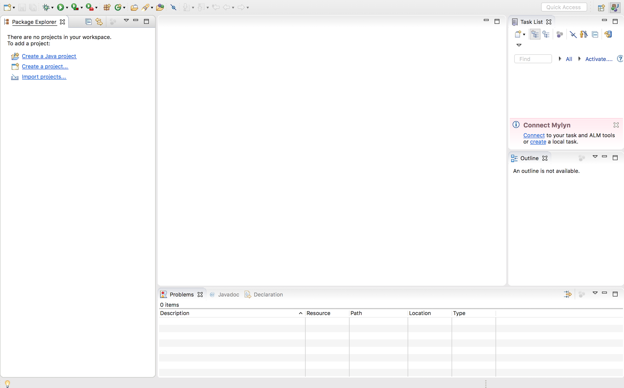 7. 화면 왼쪽의 Package Explorer에서 Create a Java project를 클릭해 자바프로젝트를 생성합니다.