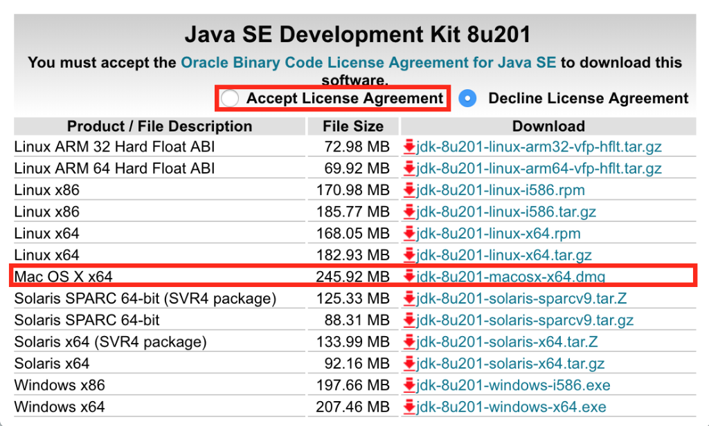 2. 위 화면 하단의 Java SE 8u201/Java SE 8u202의 JDK DOWNLOAD 선택합니다.