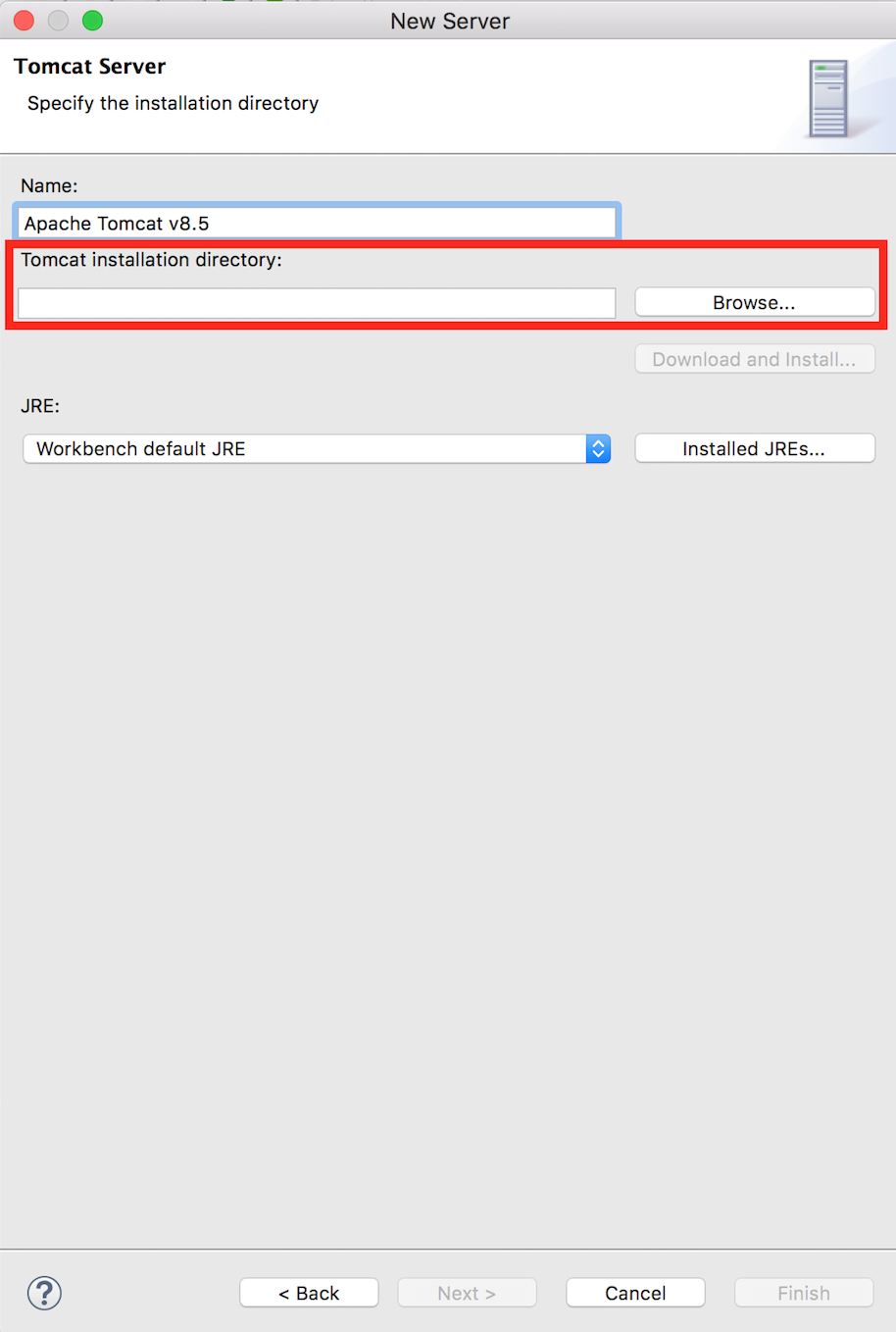 12. [Browse...] 버튼을 눌러 톰캣이 설치된 경로를 지정해줍니다.