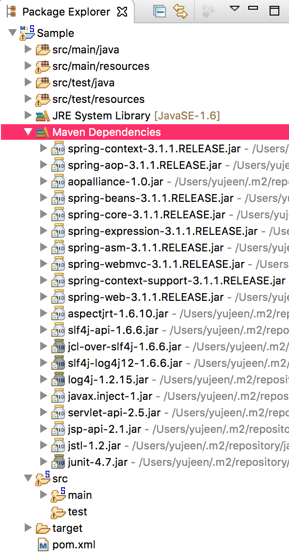 메이븐을 업데이트해주면 라이브러리를 다운로드하게 되며, 아래와 같은 폴더(?)가 생성되고, 에러가 사라지게 됩니다.